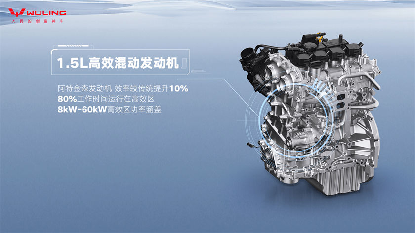 五菱紅標(biāo)增程技術(shù)采用1.5L高效混動(dòng)發(fā)動(dòng)機(jī),采用Masking設(shè)計(jì)高效燃燒系統(tǒng)和阿特金森循環(huán),較傳統(tǒng)燃油發(fā)動(dòng)機(jī)熱效率提升10%,80%的工作時(shí)間處于高效區(qū),百公里油耗低至4.3L(NEDC工況)。